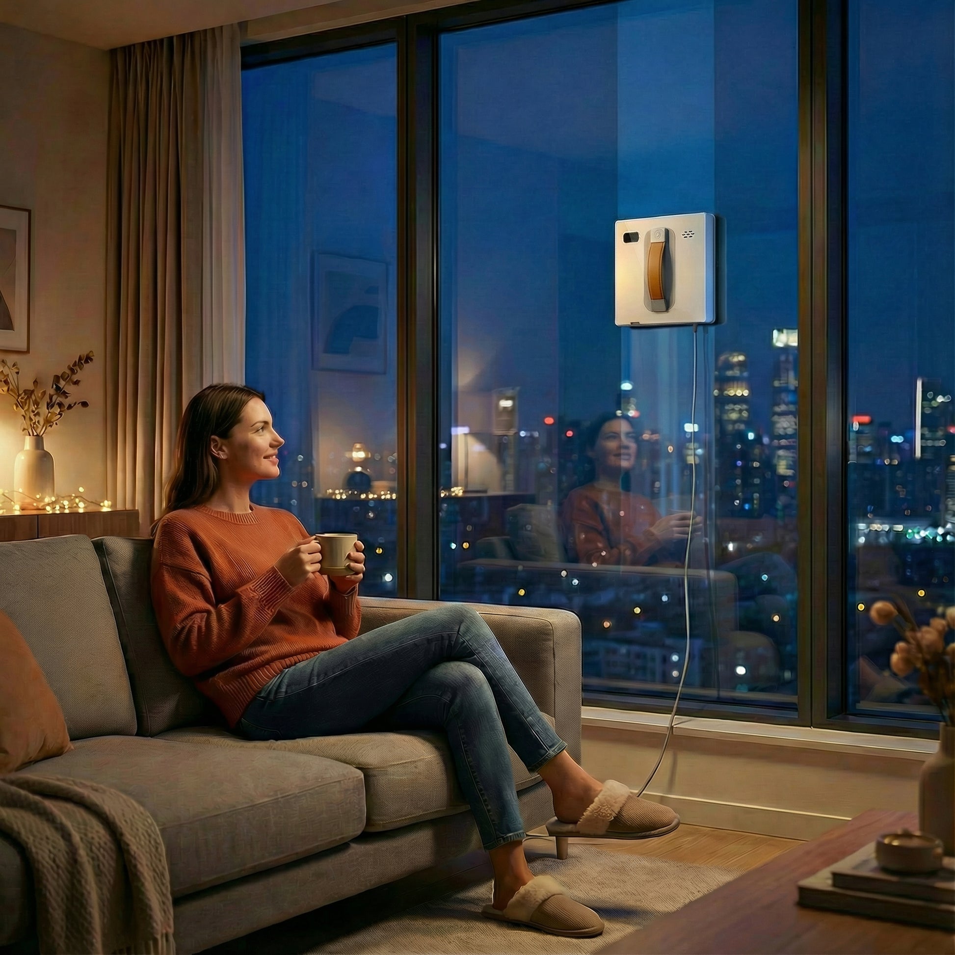 Selon le modèle, des capteurs détectent les bords des vitres sans cadre pour réduire le risque de chute. Il est recommandé d’utiliser systématiquement la corde de sécurité fournie, surtout en extérieur ou en hauteur.